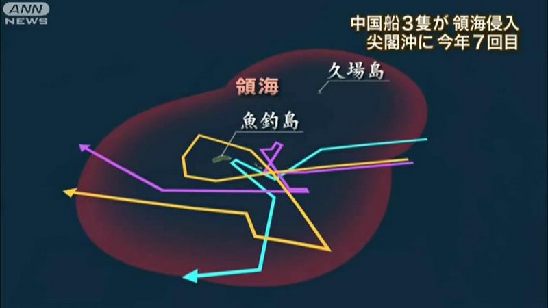 報(bào)道稱, 18日上午8時(shí)54分至9時(shí)17分,中國(guó)3艘海監(jiān)船相繼進(jìn)入釣魚島附近的“日本領(lǐng)海”,日本海上保安廳巡邏船立即發(fā)出警告。中國(guó)“海監(jiān)50”則通過無線電用中文和英語(yǔ)回答稱,釣魚島及其附屬島嶼是中國(guó)領(lǐng)土。共同社稱,3艘中國(guó)船環(huán)繞釣魚島航行約5小時(shí),“海監(jiān)50”最近時(shí)僅距島約1公里。