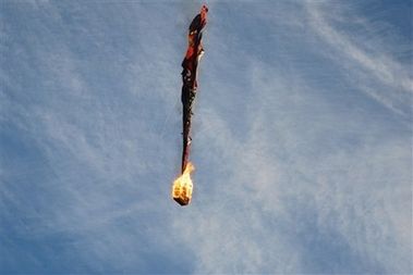 資料圖:2007年加拿大一個(gè)熱氣球起火爆炸。熊熊燃燒的熱氣球。