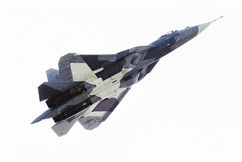 俄羅斯新一代戰(zhàn)機T-50在第十屆俄羅斯國際航空航天展覽會上表演。 新華社發(fā)