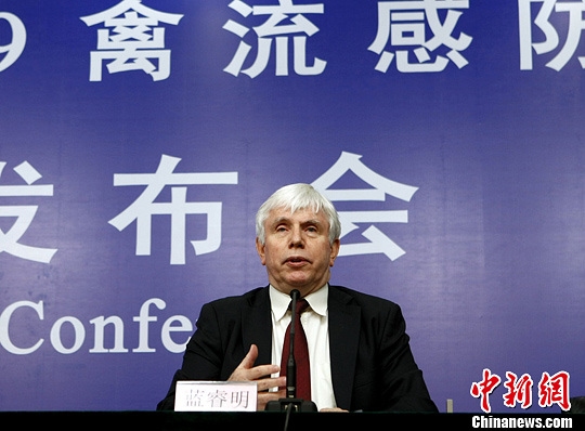 圖為世界衛(wèi)生組織駐華代表藍睿明在新聞發(fā)布會上!z影:李慧思