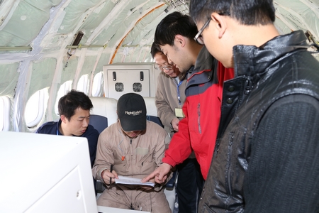 航前,技術(shù)人員對天線進(jìn)行檢查。