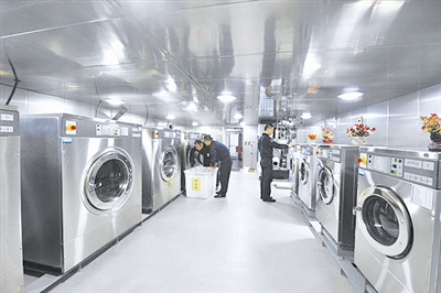 負(fù)責(zé)全體艦員衣物的洗滌、烘干、熨燙,所有送洗衣物上都統(tǒng)一掛上姓名標(biāo)簽,艦員只需將待洗衣物裝進洗衣袋內(nèi),送至洗衣房,過半天時間自取即可。