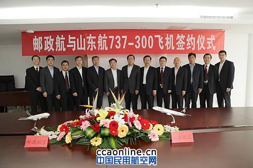 2013年4月28日上午,中國(guó)郵政航空有限責(zé)任公司(簡(jiǎn)稱“郵航”)與山 東航空股份有限公司(簡(jiǎn)稱“ 山航”)簽訂五架波音737飛機(jī)的購(gòu)買協(xié)議。郵航李玉峰總經(jīng)理和山航于海田總經(jīng)理分別代表雙方簽字,郵航胡曉光總會(huì)計(jì)師、王超總工程師出席簽字儀式。