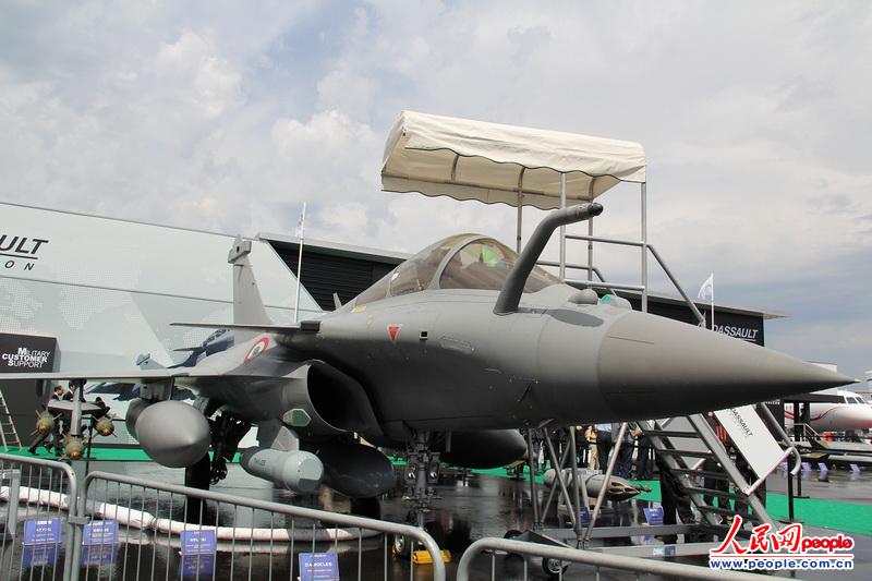 法國陣風(fēng)B型戰(zhàn)機(jī)掛彈展出,爭取國際用戶。人民網(wǎng)記者崔悅攝