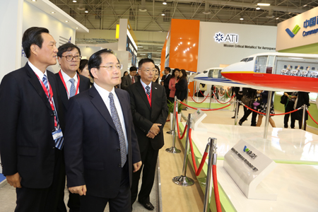 中國經(jīng)濟網(wǎng)航空6月18日訊 2013年6月17日,第五十屆巴黎國際航空航天展覽會在法國巴黎開幕,中國商飛公司攜C919大型客機模型、ARJ21-700飛機模型參加本屆航展,全面展示C919大型客機和ARJ21-700飛機研制進展。董事長金壯龍率團參加本屆航展、副董事長滕一龍、總會計師田民參加航展相關(guān)活動。 航展期間,金壯龍、滕一龍和田民等參觀了賽峰集團、MOOG公司、中航工業(yè)、愛勵國際、CFM公司等參展商展臺,并與各公司管理層就加強合作進行了深入的會談。
