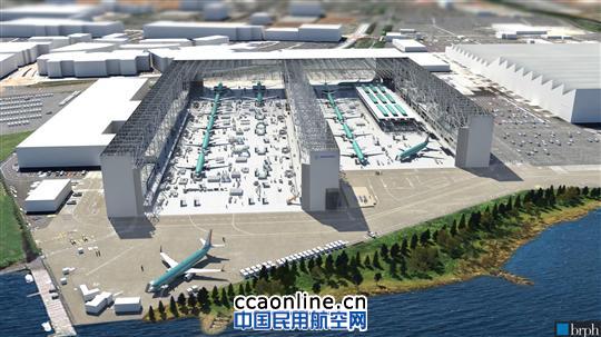 未來(lái)737總裝廠房效果圖,MAX將在現(xiàn)有的兩條生產(chǎn)線之間的“試驗(yàn)生產(chǎn)線”上進(jìn)行制造