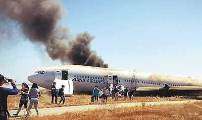 韓國(guó)亞洲航空公司波音777-200型客機(jī)在美國(guó)舊金山國(guó)際機(jī)場(chǎng)降落中發(fā)生事故,燃起大火。