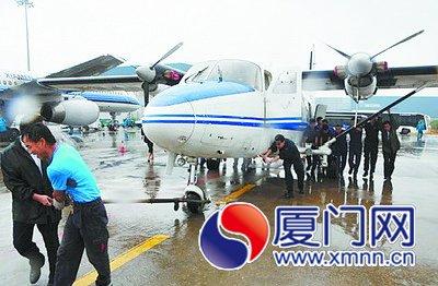 受“西馬侖”影響,這架固定翼飛機被轉(zhuǎn)移至廈門機場附近的太古機庫,待風雨過后,再回到停機位值班待命。從太古機庫到停機位有一段一百多米的斜坡,因為牽引車壞了,只好調(diào)來20名小伙子人工“推”飛機。(記者 曾嫣艷 通訊員 劉匯)