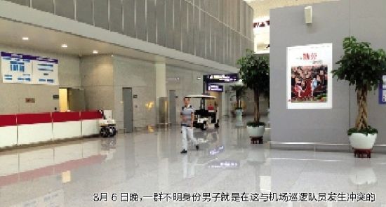 8月6日晚10點半左右,又有一幫不明身份男子,沖進(jìn)新橋機(jī)場航站樓,“在里面肆意抽煙、拉客”,態(tài)度囂張,人數(shù)有一二十人之眾。這次遭遇機(jī)場治安巡邏隊員勸阻時,對方竟直接動手,毆打巡邏隊員,致使多人受傷。