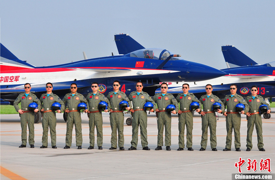 8月26日,中國空軍八一飛行表演隊(duì)在莫斯科拉緬斯科耶機(jī)場展開航展前的檢驗(yàn)性飛行,當(dāng)日,中國空軍在莫斯科宣布,從8月30日至9月1日,八一飛行表演隊(duì)將在第十一屆莫斯科航展上進(jìn)行3場飛行表演,準(zhǔn)備了三個(gè)表演方案、21個(gè)動(dòng)作。每場實(shí)施哪個(gè)飛行表演方案,將視當(dāng)天氣象條件而定。備受關(guān)注的是,中國空軍同時(shí)披露了在莫斯科上空飛舞的11位飛行員名錄和角色,向國際友人介紹這些“藍(lán)天舞者”的風(fēng)格與風(fēng)采。圖為11名飛行員合影照片。中新社發(fā) 申進(jìn)科 攝