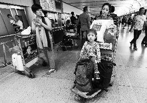 ▲ 9月15日,“海娜號(hào)”滯留游客抵達(dá)首都國(guó)際機(jī)場(chǎng)2號(hào)航站樓。 新華社記者 張宇攝