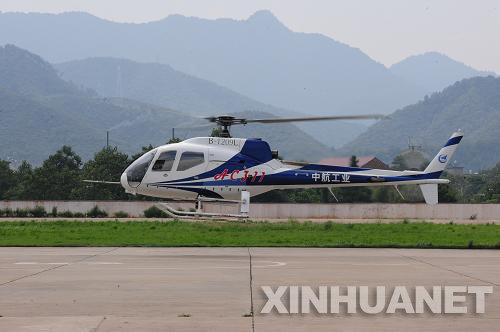 資料圖片: 2011年9月1日,國產2噸級輕型民用直升機AC311正在執(zhí)行“自轉著陸”科目試飛。