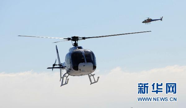 資料圖片:11月8日,AC311直升機(jī)(前)和AC301直升機(jī)在飛行中。