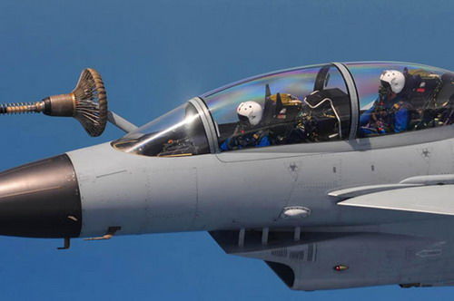 南海上空進行空中加油訓練的雙座型殲-10戰(zhàn)機