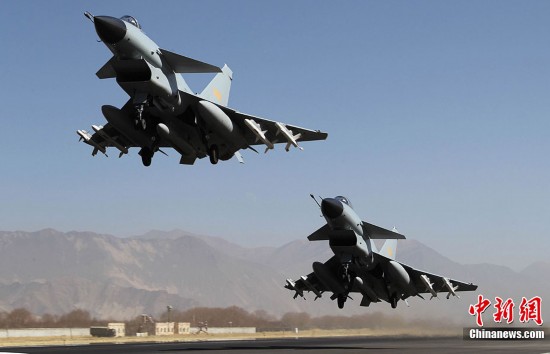 1月31日,雪域高原陽(yáng)光明媚,萬(wàn)里無(wú)云。駐藏空軍某軍用機(jī)場(chǎng)戰(zhàn)鷹列陣,車輛奔流,戰(zhàn)士們?cè)诰o張有序中拉開(kāi)龍年新春首飛的序幕。圖為10時(shí)30分戰(zhàn)鷹準(zhǔn)時(shí)編隊(duì)起飛。中新社發(fā) 劉應(yīng)華 攝 圖片來(lái)源:CNSPHOTO