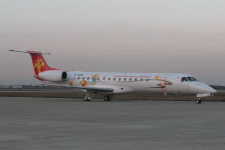 身著卡通“貔貅”的ERJ145噴氣式客機(jī)
