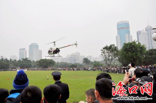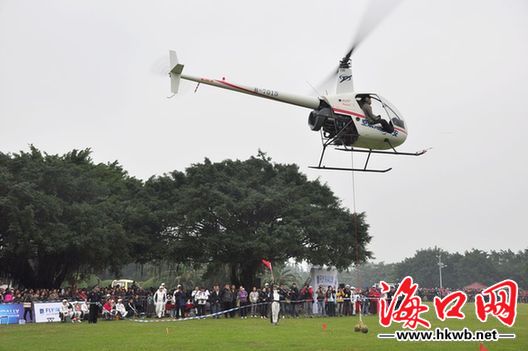 12月17日,2011中國(guó)首屆環(huán)海南島飛行拉力賽在?谂e行;顒(dòng)現(xiàn)場(chǎng)規(guī)?涨,扣人心弦,精彩紛呈。據(jù)悉,本次飛行拉力賽至本月30日止。圖為直升機(jī)定位“投籃”賽現(xiàn)場(chǎng)