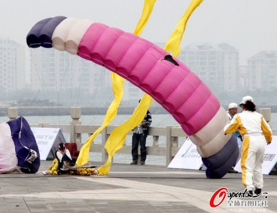 2011年12月17日,2011環(huán)海南飛行拉力賽在?陂_幕,80余具航空器將競(jìng)秀海口灣。在開幕式上,一名女跳傘運(yùn)動(dòng)員表演落地時(shí)降速太快導(dǎo)致受傷被送醫(yī)院。