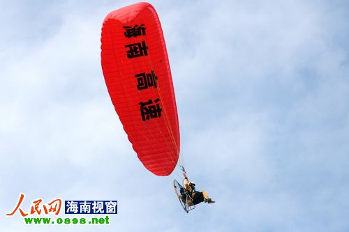 21日上午8點(diǎn)左右,經(jīng)過一天的休整,2011環(huán)海南島飛行拉力賽東方段在東方市邊貿(mào)城正式開幕。比起前幾日的大風(fēng)天氣,今天的風(fēng)速明顯減弱,在?谖茨芘c廣大市民和游客見面的熱氣球、動力傘、動力三角翼今天也終于如愿升空,在東方的碧海藍(lán)天間盡情的翱翔。大批東方市民趕到現(xiàn)場,一幕幕精彩的飛行表演引得現(xiàn)場尖叫連連、掌聲不斷。