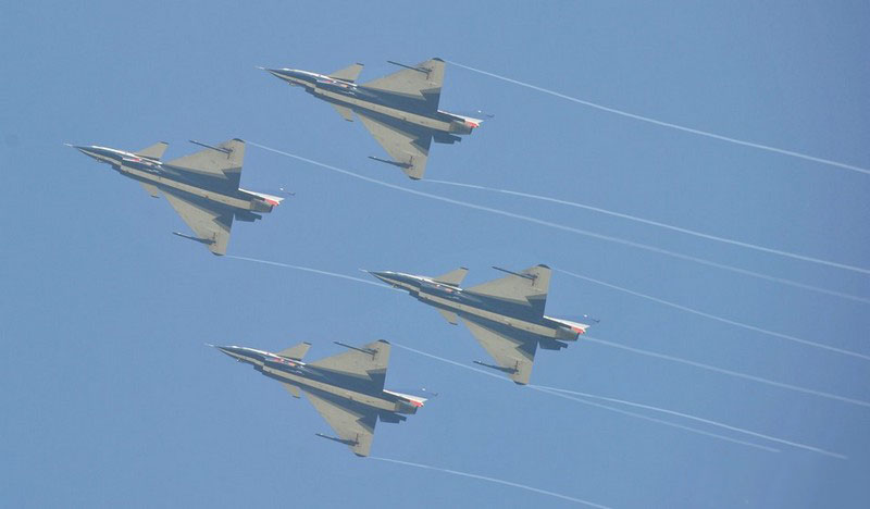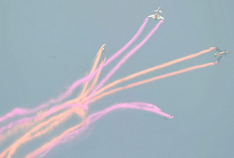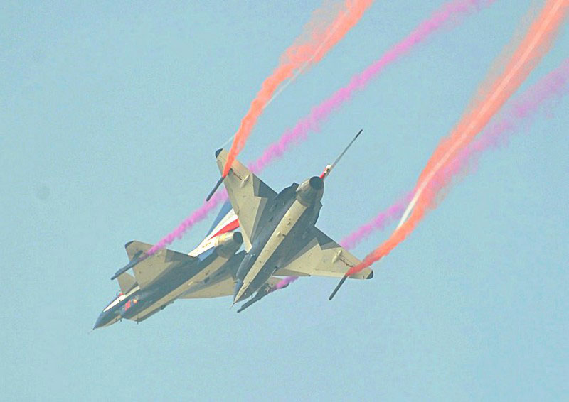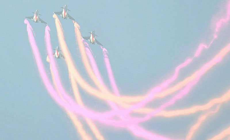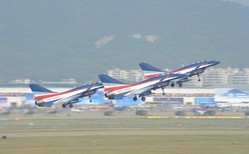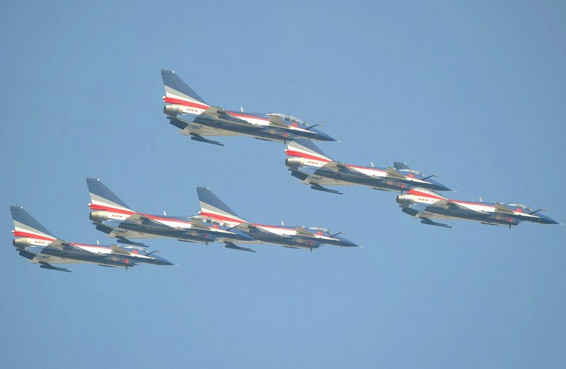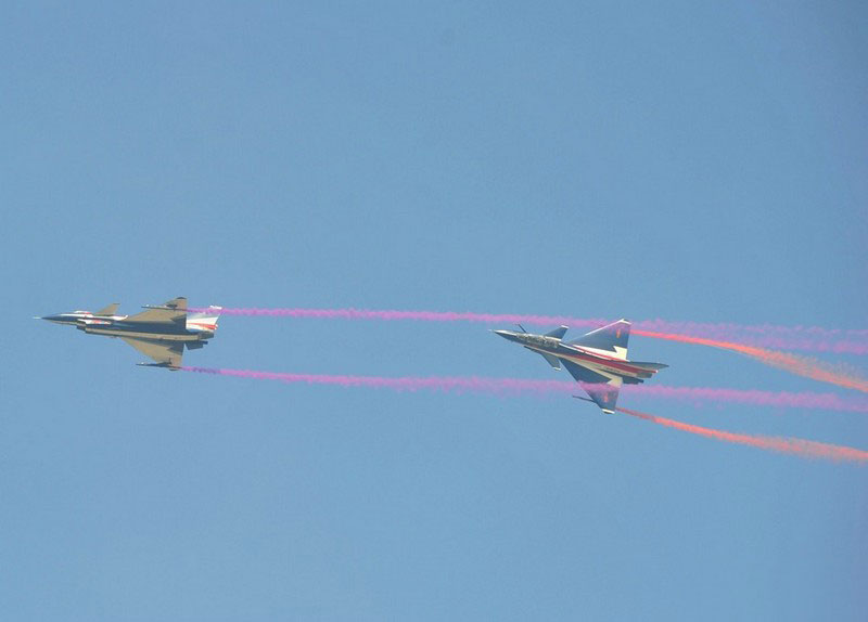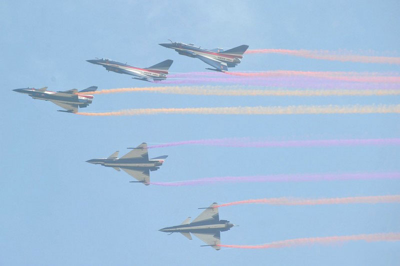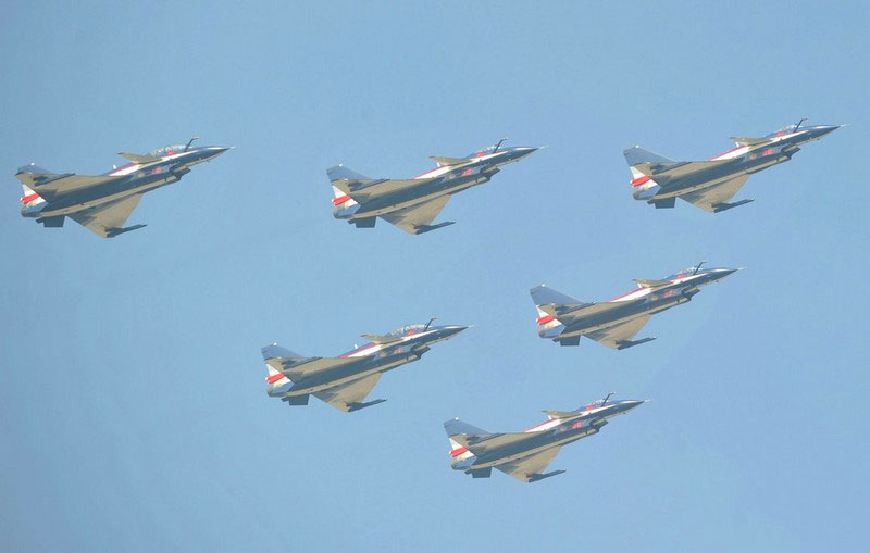 【環(huán)球網(wǎng)赴珠海航展特派報道組綜合報道】第九屆中國國際航空航天博覽會(珠海航展2012)將于11月13日-18日在廣東省珠海市金灣區(qū)三灶鎮(zhèn)隆重舉行。開展當(dāng)日,中國空軍八一飛行表演隊的6架殲-10戰(zhàn)機翱翔藍天,漫步云端。