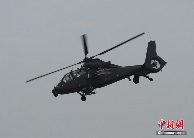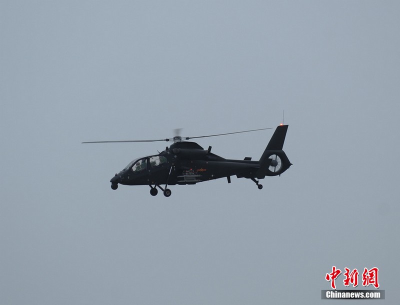 中新網(wǎng)珠海11月11日電(陳海峰) 中國(guó)陸航直19武裝直升機(jī)11日在珠海航展上空進(jìn)行了精彩的飛行表演。