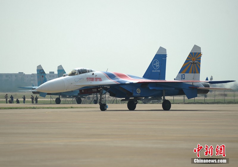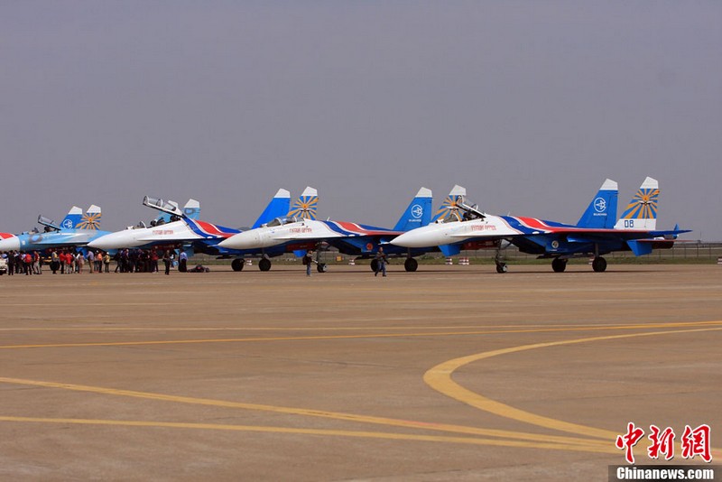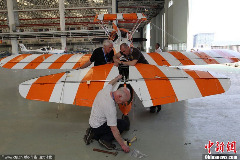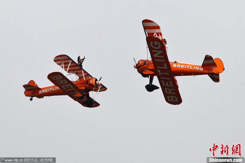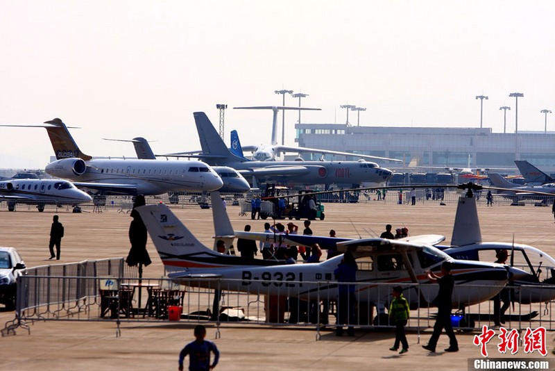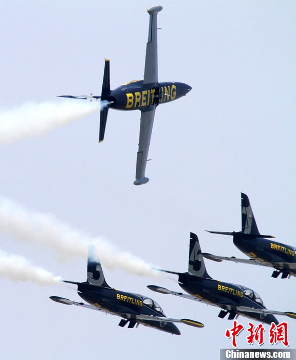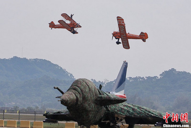 承辦中國(guó)航展的珠海航展有限公司副總經(jīng)理?xiàng)钯t剛介紹,第九屆中國(guó)珠海航展有來(lái)自39個(gè)國(guó)家和地區(qū)近650家中外航空航天廠商參展,根據(jù)最新的參展飛機(jī)清單,本屆航展上的各類(lèi)飛行器實(shí)物將為114架,包括殲擊機(jī)、直升機(jī)、客機(jī)、公務(wù)機(jī)、水陸兩棲多用途飛機(jī)等,有近50架將動(dòng)態(tài)飛行展示;飛行表演將集中在 11月16日-18日。圖為一臺(tái)被包裹得嚴(yán)嚴(yán)實(shí)實(shí)的“棕子機(jī)”,其上方則是“百年靈”機(jī)翼行走飛行特技表演隊(duì)在進(jìn)行訓(xùn)練。