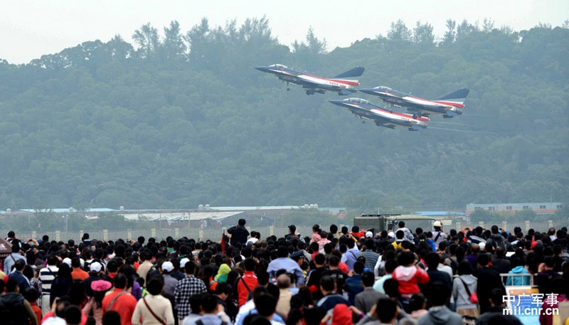 11月18日下午,珠海機場的上空烏云密布,天氣極為復(fù)雜多變。空軍八一表演隊在十萬多觀眾的歡呼雀躍中,完成一系列高難動作,為第九屆珠海航展圓滿謝幕。