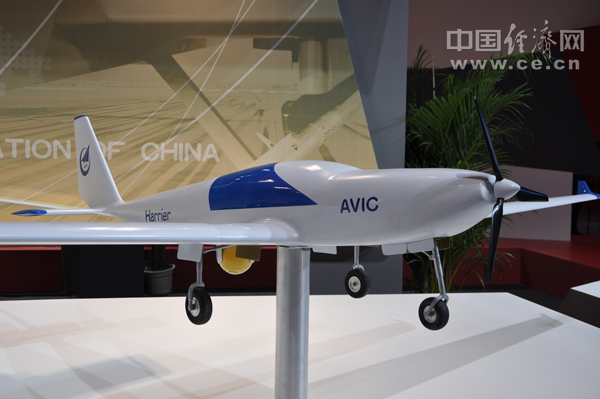 中航工業(yè)比例為1:6的鷂鷹無人機模型,該機型將亮相本屆珠海航展 中國經(jīng)濟網(wǎng)記者 段丹峰 攝