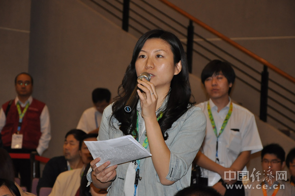 經(jīng)濟(jì)日?qǐng)?bào)社中國(guó)經(jīng)濟(jì)網(wǎng)記者劉瑾現(xiàn)場(chǎng)提問 中國(guó)經(jīng)濟(jì)網(wǎng)記者 段丹峰 攝