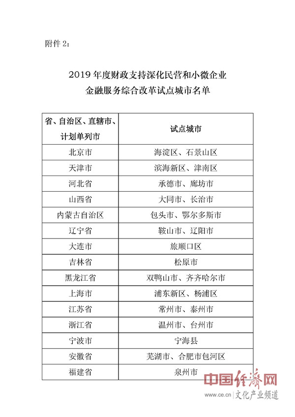 經(jīng)濟(jì)日?qǐng)?bào)-中國(guó)經(jīng)濟(jì)網(wǎng)北京11月26日訊 日前,財(cái)政部公布2019年度財(cái)政支持深化民營(yíng)和小微企業(yè)金融服務(wù)綜合改革試點(diǎn)城市名單,確定全國(guó)59個(gè)市(州、區(qū))入選首批試點(diǎn)城市。