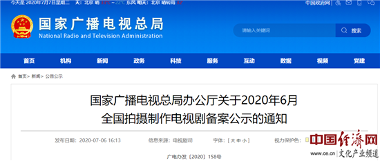 國家廣播電視總局6月備案公示電視劇61部
