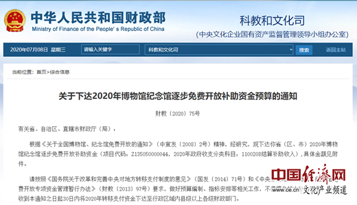 財政部:2020年博物館紀念館逐步免費開放補助資金預算超30億