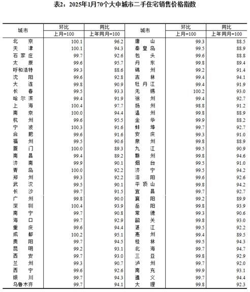 1月份,二線城市新建商品住宅銷售價(jià)格環(huán)比由上月持平轉(zhuǎn)為上漲0.1%,為2023年6月以來(lái)首次上漲;二手住宅環(huán)比下降0.3%,降幅與上月相同。三線城市新建商品住宅和二手住宅銷售價(jià)格環(huán)比分別下降0.2%和0.4%,降幅均與上月相同。