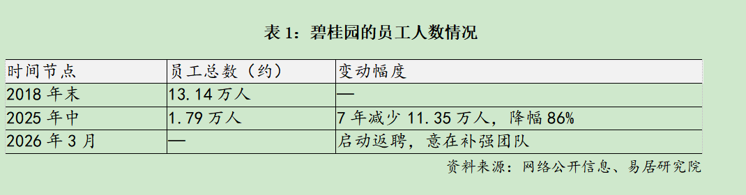 據(jù)嚴(yán)躍進(jìn)分析,碧桂園此次啟動(dòng)大規(guī)模返聘,是其經(jīng)歷深度調(diào)整后,經(jīng)營(yíng)重心發(fā)生實(shí)質(zhì)性轉(zhuǎn)變的明確信號(hào)。公開數(shù)據(jù)顯示,公司員工總數(shù)已從2018年末的約13萬(wàn)人銳減至去年底的約2萬(wàn)人,減員幅度超過80%。這一數(shù)據(jù)直觀地反映出,在過去幾年的行業(yè)深度調(diào)整期,企業(yè)為求生存不得不采取極致的縮表策略與降本增效措施。本質(zhì)上,這背后折射出的,是房企出險(xiǎn)后經(jīng)營(yíng)秩序被徹底打破的現(xiàn)實(shí)困境。