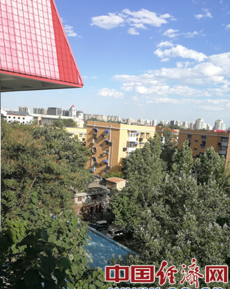 圖為藍(lán)條白云下的北京市西城區(qū)白紙坊東街2號(hào)。