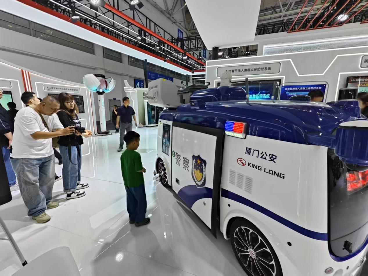 頭頂無(wú)人機(jī)、肚藏機(jī)器狗……集多種科技于一身的無(wú)人安防警車吸引了小朋友的目光。 中國(guó)經(jīng)濟(jì)網(wǎng)記者梁木攝