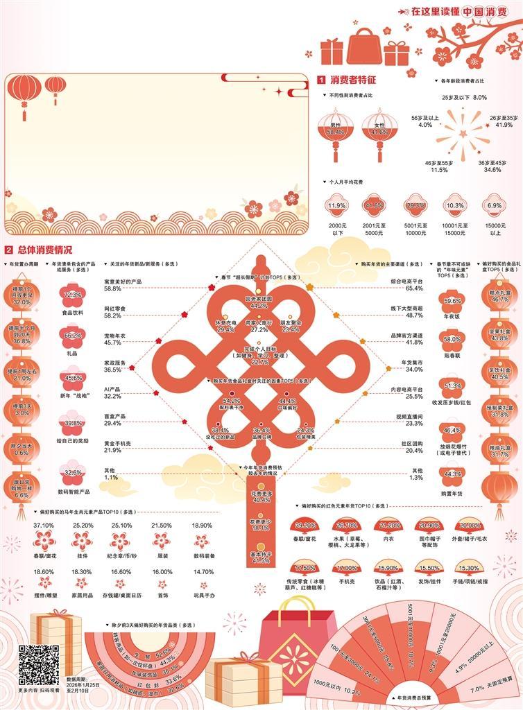 消費(fèi)邏輯的變化,正在重構(gòu)年味。當(dāng)年輕消費(fèi)者逐漸成為年貨置辦“主理人”,傳統(tǒng)習(xí)俗不斷煥發(fā)新活力,呈現(xiàn)出對(duì)個(gè)性化、體驗(yàn)感和情感共鳴的更高需求。在這個(gè)辭舊迎新的節(jié)點(diǎn),人們購(gòu)買的不是商品,而是一份心意、一種期待和對(duì)“認(rèn)真過年”的堅(jiān)持。其中蘊(yùn)含的是最鮮活的民生注腳。無論時(shí)代如何變遷,這份對(duì)生活的熱愛和向往,永遠(yuǎn)是春節(jié)最動(dòng)人的底色。
