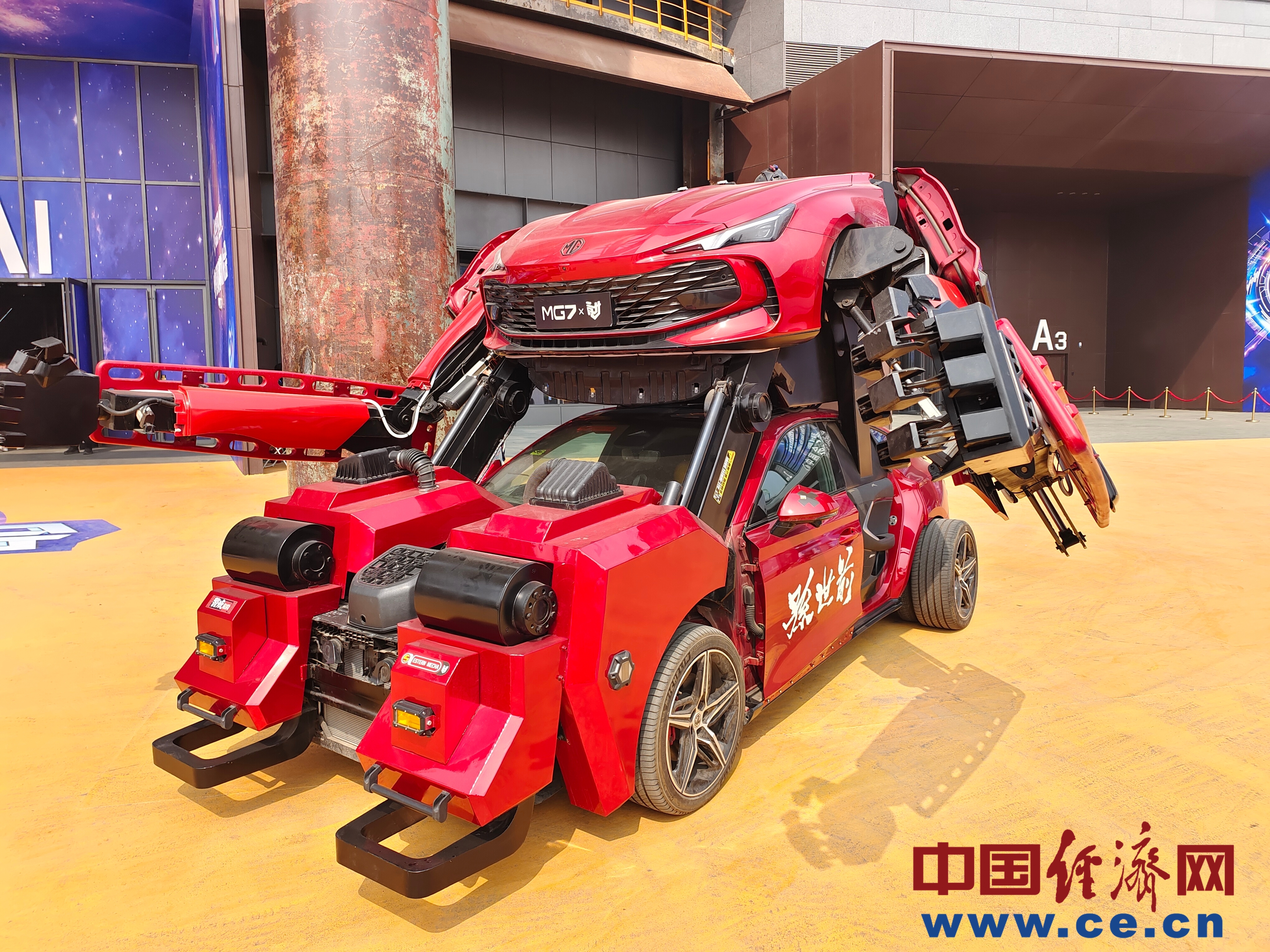 MECHASUN格斗汽車機甲,由孫世前帶領(lǐng)團隊研發(fā)制作,該系列機甲采用了團隊自主研發(fā)的專利架構(gòu)。中國經(jīng)濟網(wǎng)記者 朱曉倩/攝