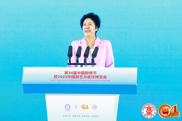 中國烹飪協(xié)會(huì)會(huì)長楊柳致辭(中國烹飪協(xié)會(huì)供圖)