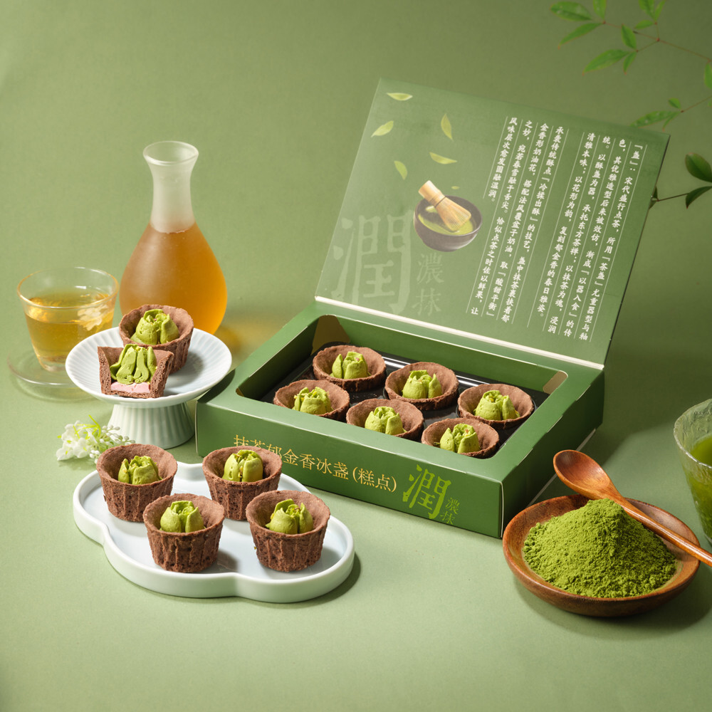 與往年不同的是,“唐宋文化”成為今年盒馬抹茶烘焙設(shè)計(jì)的主命題,如抹茶郁金香冰盞呼應(yīng)《夢(mèng)華錄》等文化熱點(diǎn),抹茶琴鍵布朗尼還原中國茶葉經(jīng)典風(fēng)味輪?!八未鷮徝乐v求清麗婉約,因此我們?cè)谠O(shè)計(jì)產(chǎn)品的時(shí)候,不希望直給,而是給顧客一些多層次體驗(yàn)和想象空間,讓顧客在潛移默化中感受中國抹茶的魅力。”朱力群說。
