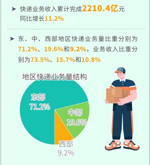 1至2月,快遞業(yè)務(wù)量保持快速攀升,累計(jì)完成284.8億件,同比增長(zhǎng)22.4%。