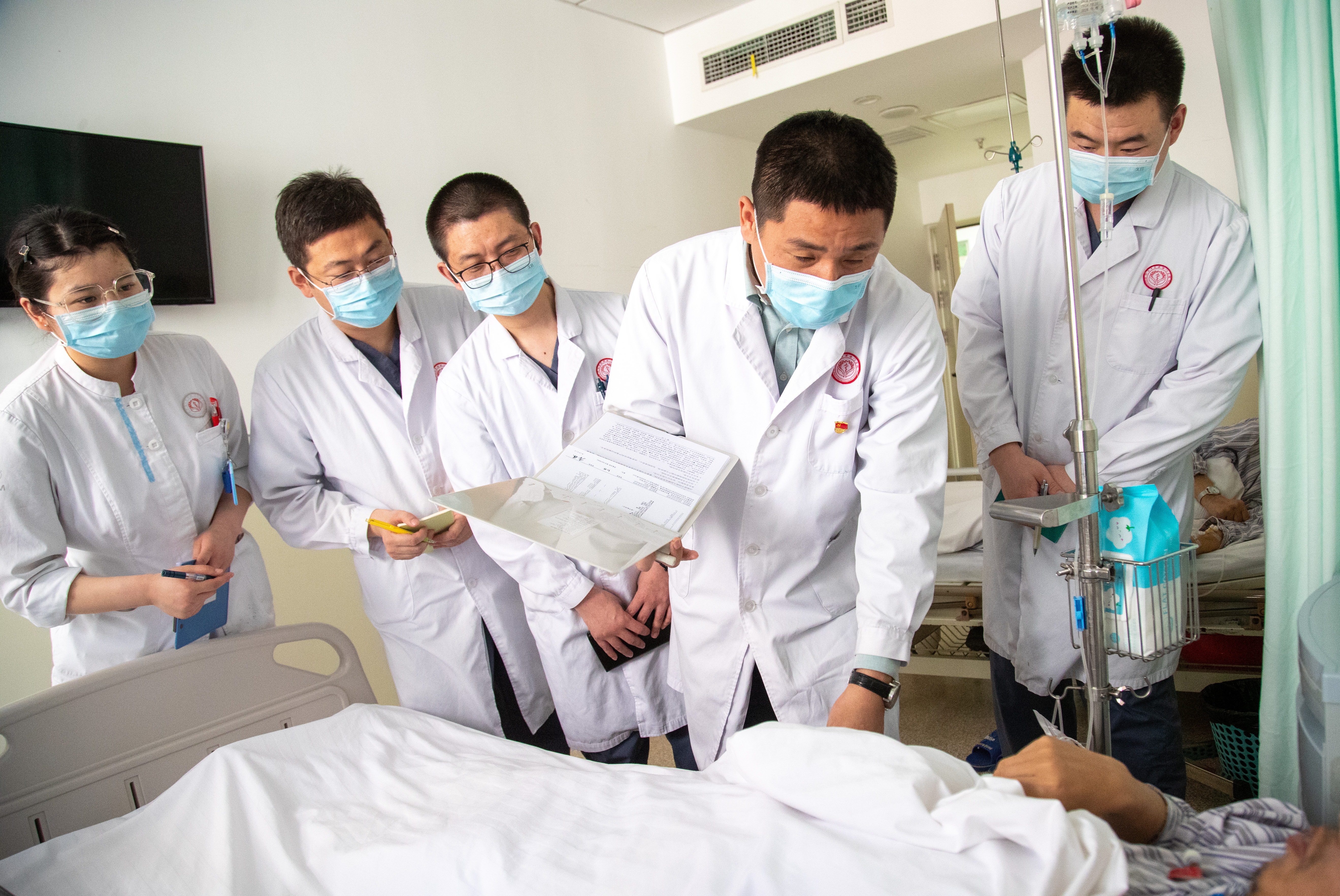 每周四晨會(huì)的“心靈查房”雷打不動(dòng)。王西讓醫(yī)生彎腰為老人調(diào)整輸液架的角度,陶何輝醫(yī)生蹲在平車前傾聽家屬訴求?!盎颊甙櫭嫉幕《?、握床欄的指節(jié)發(fā)白程度,都是疼痛的密碼。”康健常舉著查房記錄本示范:“記錄病情不能只寫‘腹痛’,要注明‘蜷縮體位’‘額頭冷汗’這些細(xì)節(jié)?!?/p>