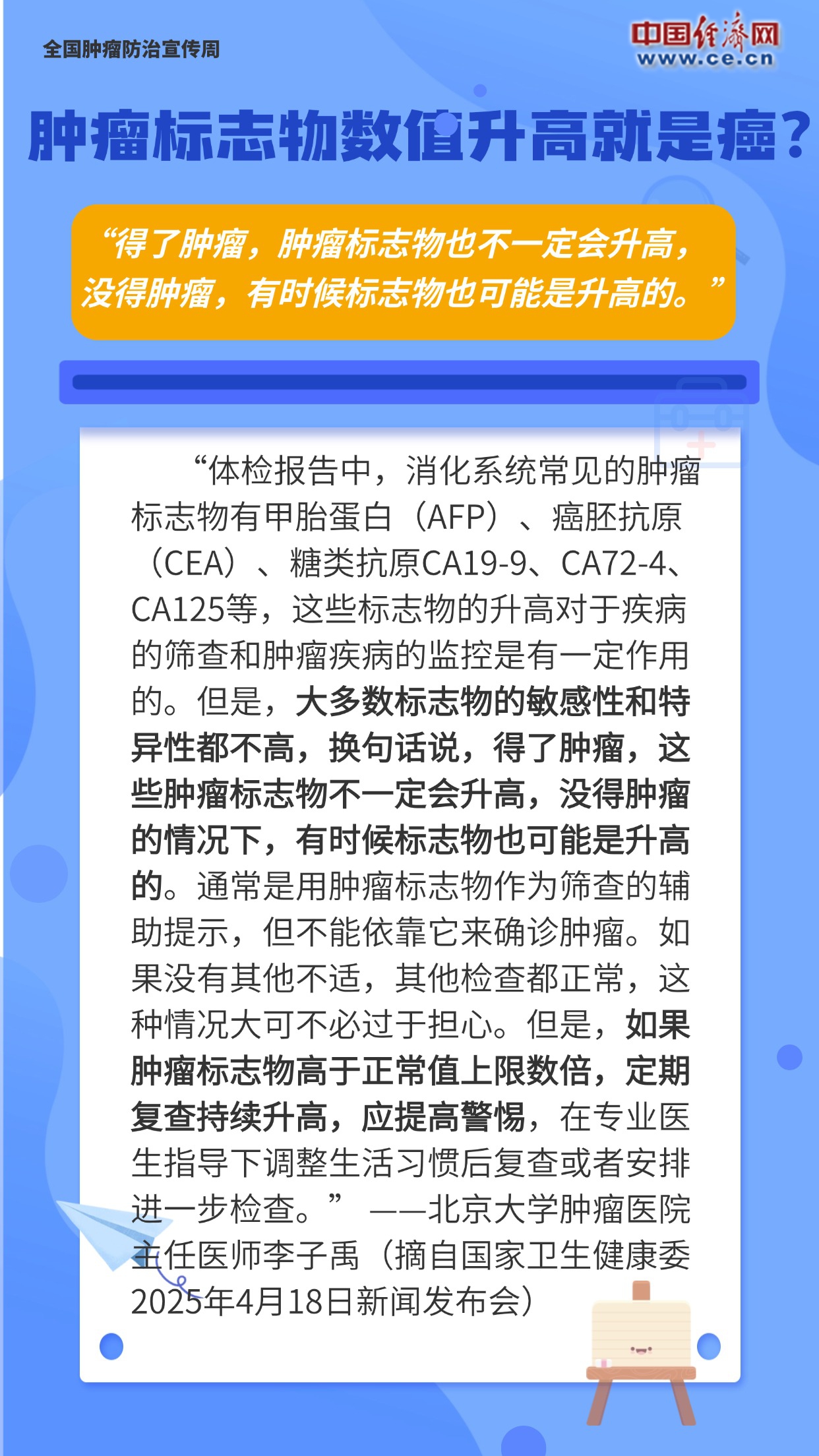 全國(guó)腫瘤防治宣傳周|腫瘤標(biāo)志物數(shù)值升高就是癌?