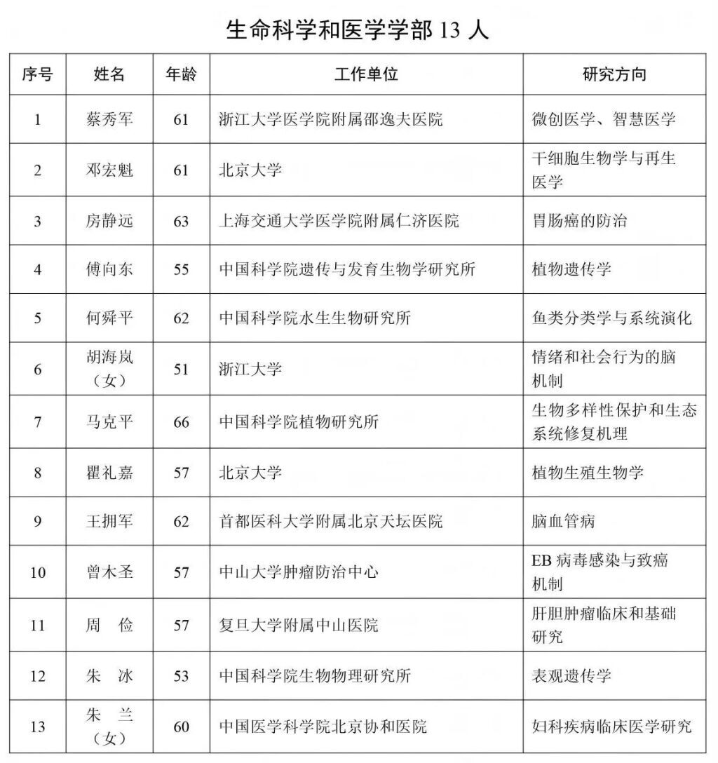 中國(guó)科學(xué)院選舉產(chǎn)生了73名中國(guó)科學(xué)院院士和27名中國(guó)科學(xué)院外籍院士,其中生命科學(xué)和醫(yī)學(xué)學(xué)部13人。