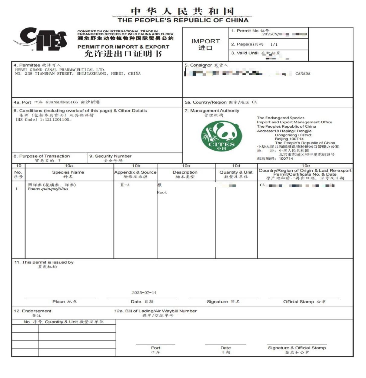 近日,從國家海關(guān)統(tǒng)計(jì)數(shù)據(jù)在線查詢平臺(tái)獲悉,以嶺藥業(yè)成功完成首批高品質(zhì)加拿大西洋參的進(jìn)口通關(guān),這也是河北省首個(gè)獲得高品質(zhì)加拿大西洋參進(jìn)口證書的企業(yè)。