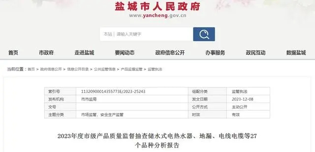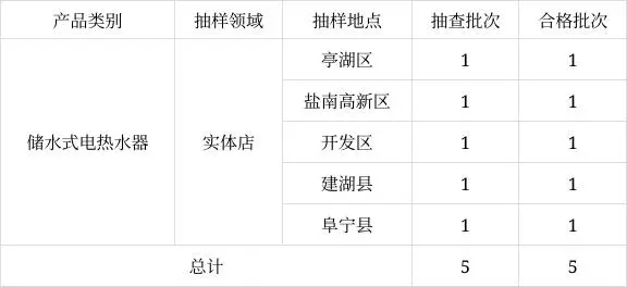 2023年度鹽城市市場(chǎng)監(jiān)督管理局委托江蘇威諾檢測(cè)技術(shù)有限公司組織實(shí)施儲(chǔ)水式電熱水器產(chǎn)品市級(jí)監(jiān)督抽查。本次抽查計(jì)劃5批次,抽到5批次,經(jīng)檢驗(yàn)合格5批次。