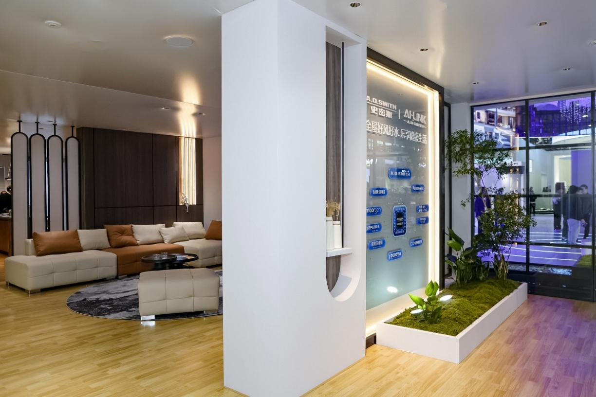 在本次AWE上,A.O.史密斯打造了一套沉浸式的智能生活體驗(yàn)間,通過部署“智慧五恒系統(tǒng)”,讓恒溫、恒濕、恒氧、恒潔、恒靜的“好風(fēng)”流動(dòng)在家的每個(gè)角落,冷熱宜人、微風(fēng)正好、不干不燥、靜謐舒爽。A.O.史密斯AI-LiNK五恒系統(tǒng),告別了空調(diào)和新風(fēng)各自運(yùn)行、井水不犯河水的模式,通過中央空氣處理機(jī)組,外加冷熱一體的“天風(fēng)地水”輻射系統(tǒng),大大縮小風(fēng)管管徑,滿足中國房屋穿梁打孔的便利需求,實(shí)現(xiàn)中央空氣調(diào)節(jié)的智能交互效果,節(jié)能高效,并解決了傳統(tǒng)家居中各區(qū)域、各高度的溫差問題,真正實(shí)現(xiàn)了全屋360度立體空間的五恒好風(fēng)。此外,還通過微正壓環(huán)境,讓灰塵、二氧化碳、甲醛等室內(nèi)空氣污染物不斷稀釋排出,確保室內(nèi)干凈宜人、富氧舒適;系統(tǒng)智能靜音運(yùn)行。