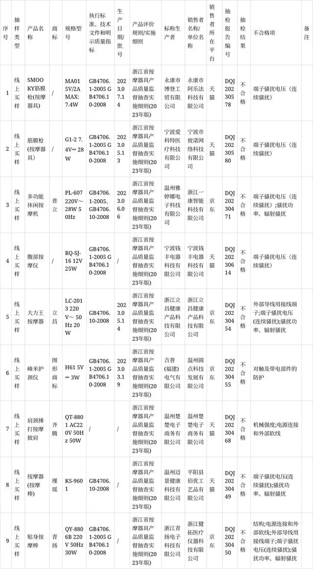 浙江省市場監(jiān)督管理局抽查:9批次按摩器具產(chǎn)品不合格
