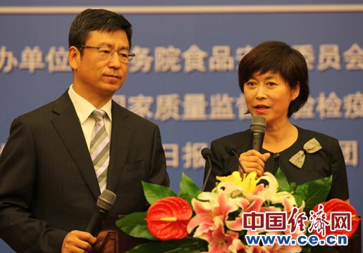 6月11日至17日被確定為今年的全國食品安全宣傳周。宣傳周主題為“共建誠信家園 同鑄食品安全”。全國食品安全宣傳周啟動儀式由國務(wù)院食品安全委員會辦公室、工業(yè)和信息化部、農(nóng)業(yè)部、商務(wù)部、衛(wèi)生部、國家工商總局、國家質(zhì)檢總局、國家糧食局、國家食品藥品監(jiān)管局、中國科協(xié)共同主辦,經(jīng)濟日報社、中糧集團承辦,中國經(jīng)濟網(wǎng)執(zhí)行承辦。圖為食品安全公益形象大使、中央電視臺主持人白巖松和敬一丹主持召開第四屆中國食品安全論壇主論壇。