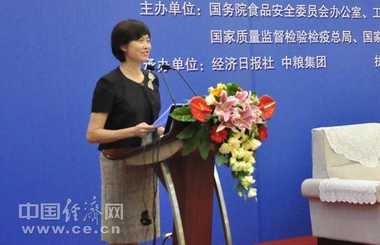 6月11日至17日被確定為今年的全國食品安全宣傳周。作為2012年全國食品安全宣傳周最重要活動之一,全國食品安全宣傳周啟動儀式暨第四屆中國食品安全論壇6月11日在北京舉行。論壇由國務(wù)院食品安全委員會辦公室、工業(yè)和信息化部、農(nóng)業(yè)部、商務(wù)部、衛(wèi)生部、國家工商總局、國家質(zhì)檢總局、國家糧食局、國家食品藥品監(jiān)管局、中國科協(xié)共同主辦,經(jīng)濟(jì)日報社、中糧集團(tuán)承辦,中國經(jīng)濟(jì)網(wǎng)執(zhí)行承辦。圖為中央電視臺節(jié)目主持人敬一丹 裴小閣 攝